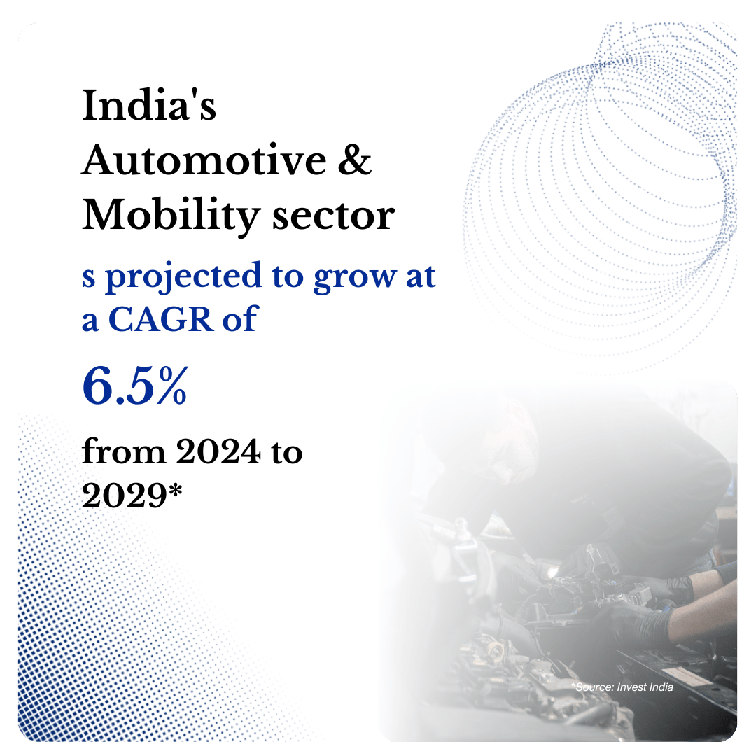 Several years ago, India’s Automotive & Mobility industry was already on a growth trajectory but faced challenges like policy ambiguity and limited infrastructure for EVs. The industry was primarily driven by traditional internal combustion engines. However, recent initiatives such as the Faster Adoption and Manufacturing of Electric Vehicles (FAME) policy, along with rising environmental concerns, have accelerated the shift toward sustainable mobility and modernized automotive solutions.